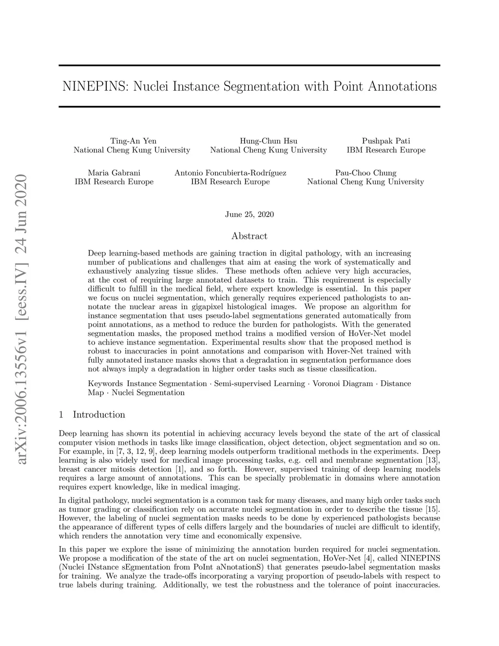 NINEPINS: Nuclei Instance Segmentation with Point Annotations