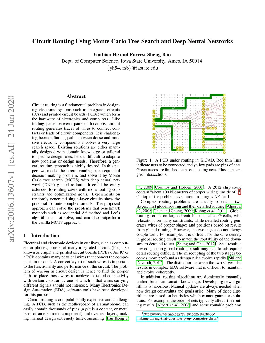 Circuit Routing Using Monte Carlo Tree Search and Deep Neural Networks