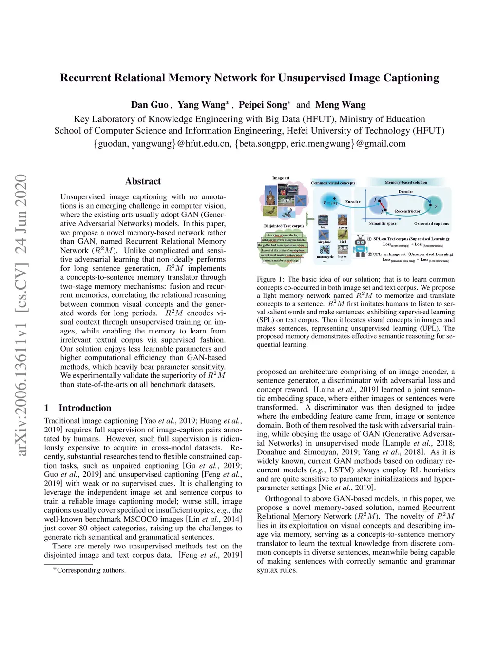 Recurrent Relational Memory Network for Unsupervised Image Captioning
