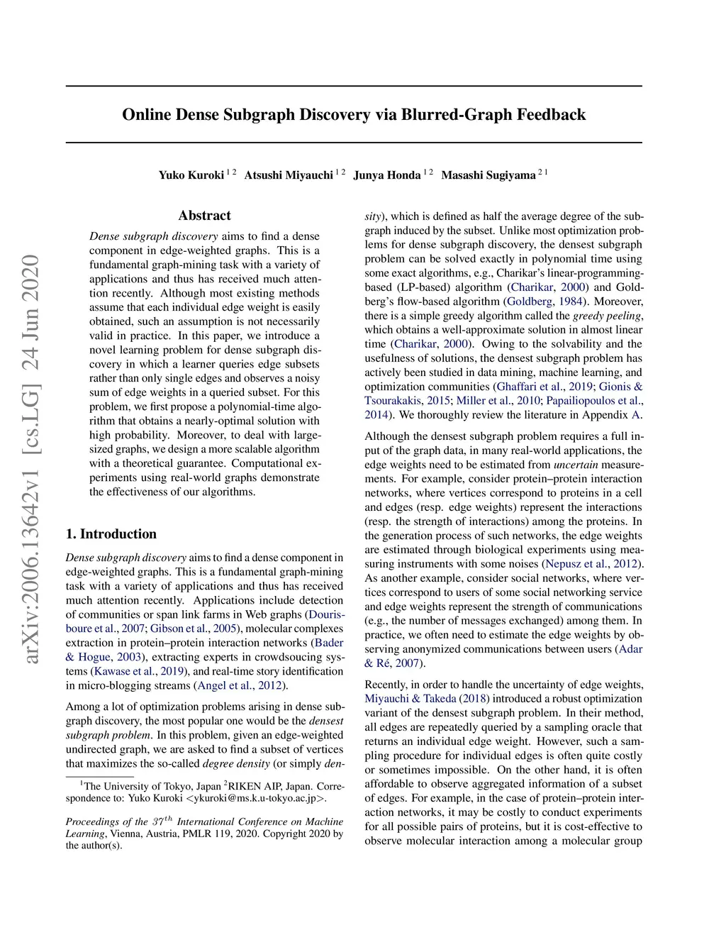 Online Dense Subgraph Discovery via Blurred-Graph Feedback