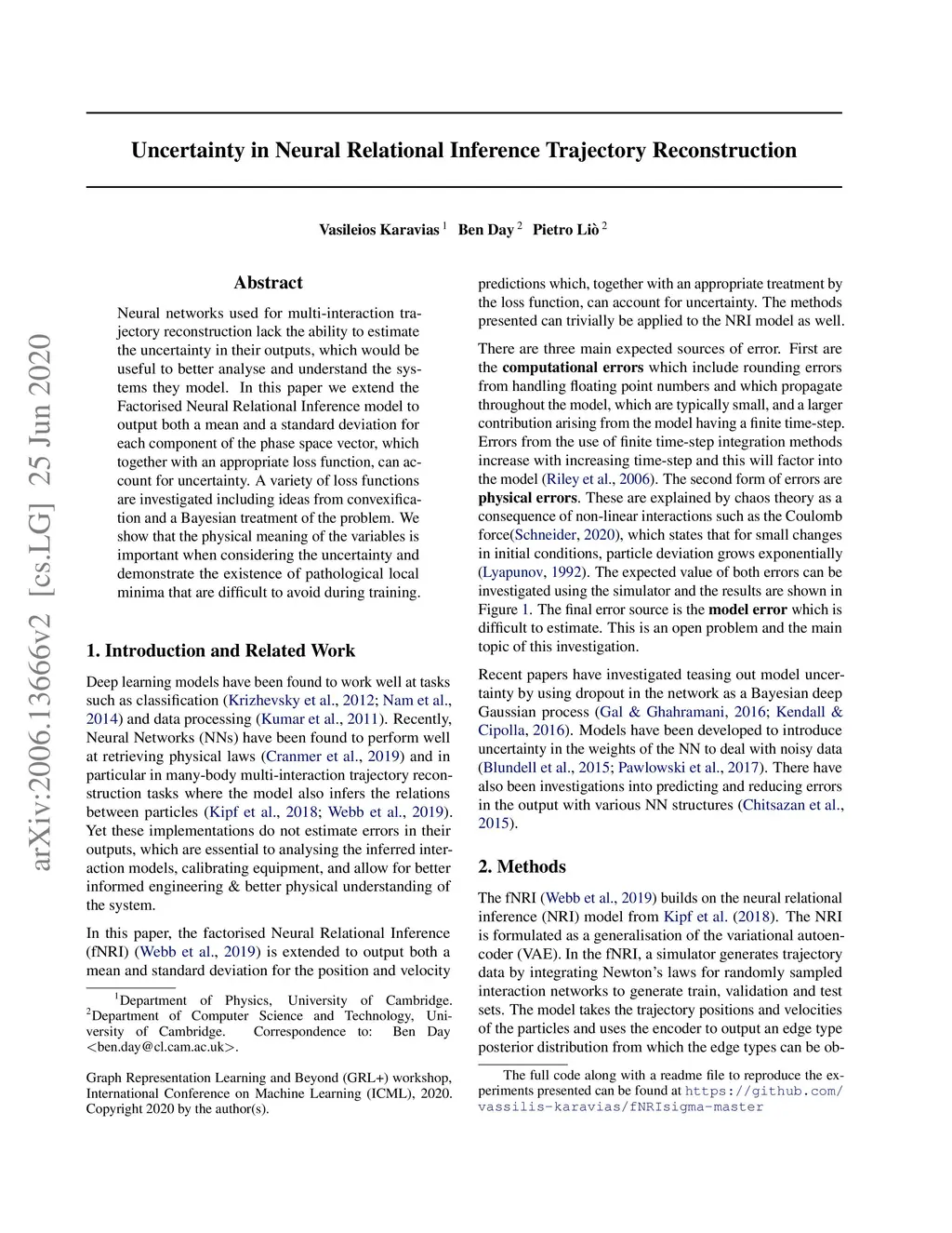 Neural networks used for multi-interaction trajectory reconstruction lack the ability to estimate the uncertainty in their outputs, which would be useful to better analyse and understand the systems they model. In this paper we extend the Factorised Neural Relational Inference model to output both a mean and a standard deviation for each component of the phase space vector, which together with an appropriate loss function, can account for uncertainty. A variety of loss functions are investigated including ideas from convexification and a Bayesian treatment of the problem. We show that the physical meaning of the variables is important when considering the uncertainty and demonstrate the existence of pathological local minima that are difficult to avoid during training.