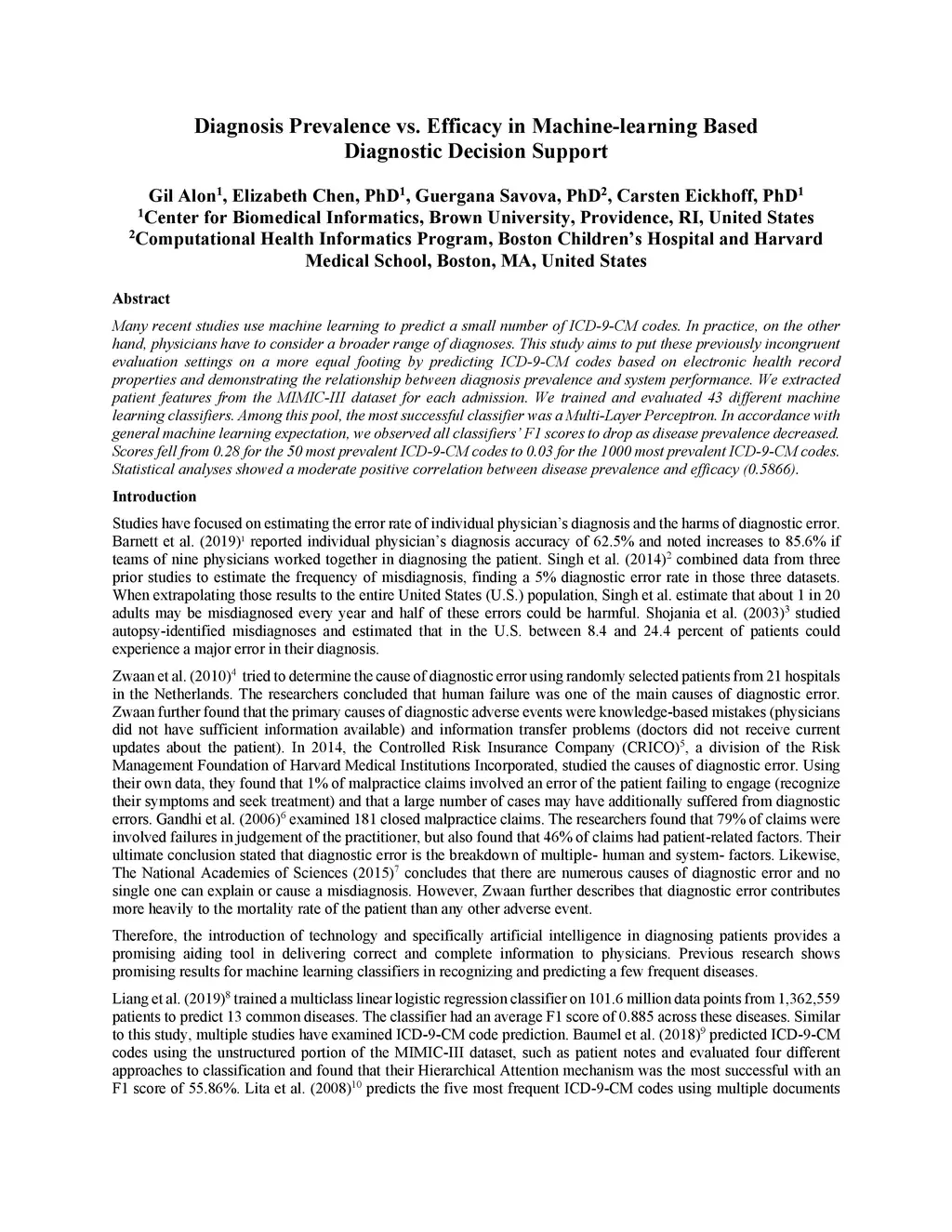 Diagnosis Prevalence vs. Efficacy in Machine-learning Based Diagnostic
