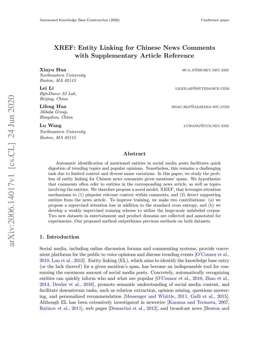 XREF: Entity Linking for Chinese News Comments with Supplementary