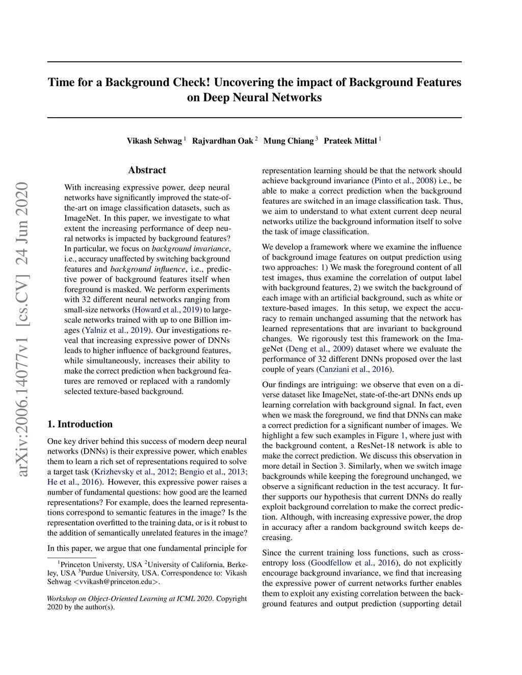 With increasing expressive power, deep neural networks have significantly improved the state-of-the-art on image classification datasets, such as ImageNet. In this paper, we investigate to what extent the increasing performance of deep neural networks is impacted by background features? In particular, we focus on background invariance, i.e., accuracy unaffected by switching background features and background influence, i.e., predictive power of background features itself when foreground is masked. We perform experiments with 32 different neural networks ranging from small-size networks to large-scale networks trained with up to one Billion images. Our investigations reveal that increasing expressive power of DNNs leads to higher influence of background features, while simultaneously, increases their ability to make the correct prediction when background features are removed or replaced with a randomly selected texture-based background.