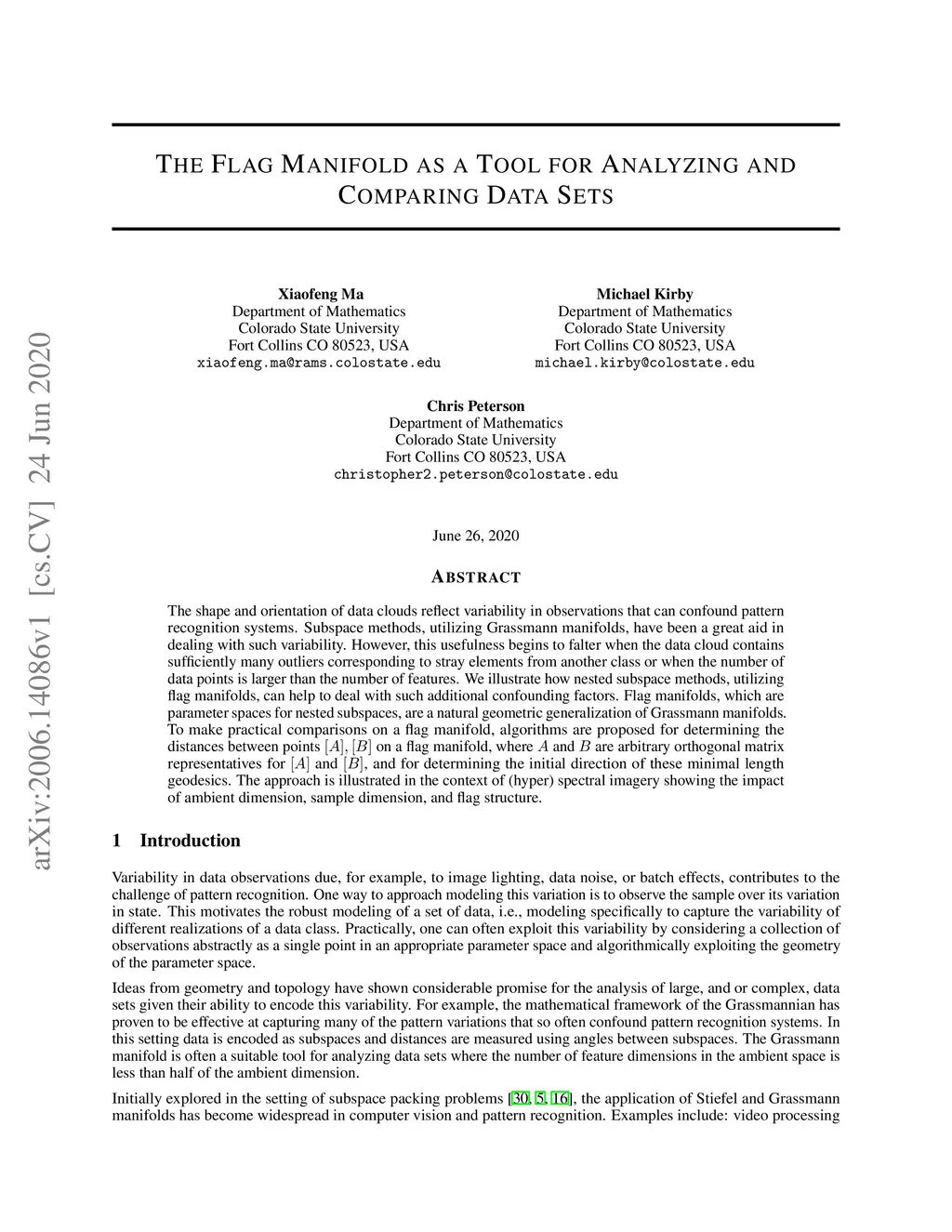 The shape and orientation of data clouds reflect variability in observations that can confound pattern recognition systems. Subspace methods, utilizing Grassmann manifolds, have been a great aid in dealing with such variability. However, this usefulness begins to falter when the data cloud contains sufficiently many outliers corresponding to stray elements from another class or when the number of data points is larger than the number of features. We illustrate how nested subspace methods, utilizing flag manifolds, can help to deal with such additional confounding factors. Flag manifolds, which are parameter spaces for nested subspaces, are a natural geometric generalization of Grassmann manifolds. To make practical comparisons on a flag manifold, algorithms are proposed for determining the distances between points on a flag manifold, where and are arbitrary orthogonal matrix representatives for and , and for determining the initial direction of these minimal length geodesics. The approach is illustrated in the context of (hyper) spectral imagery showing the impact of ambient dimension, sample dimension, and flag structure.