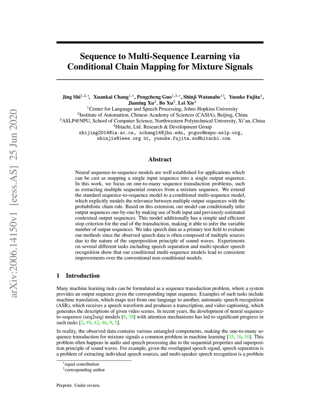 Sequence to Multi-Sequence Learning via Conditional Chain Mapping for