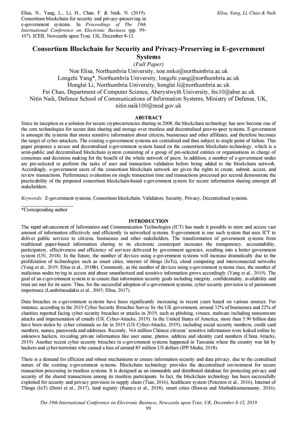 Since its inception as a solution for secure cryptocurrencies sharing in 2008, the blockchain technology has now become one of the core technologies for secure data sharing and storage over trustless and decentralised peer-to-peer systems. E-government is amongst the systems that stores sensitive information about citizens, businesses and other affiliates, and therefore becomes the target of cyber attackers. The existing e-government systems are centralised and thus subject to single point of failure. This paper proposes a secure and decentralised e-government system based on the consortium blockchain technology, which is a semi-public and decentralised blockchain system consisting of a group of pre-selected entities or organisations in charge of consensus and decisions making for the benefit of the whole network of peers. In addition, a number of e-government nodes are pre-selected to perform the tasks of user and transaction validation before being added to the blockchain network. Accordingly, e-government users of the consortium blockchain network are given the rights to create, submit, access, and review transactions. Performance evaluation on single transaction time and transactions processed per second demonstrate the practicability of the proposed consortium blockchain-based e-government system for secure information sharing amongst all stakeholders.