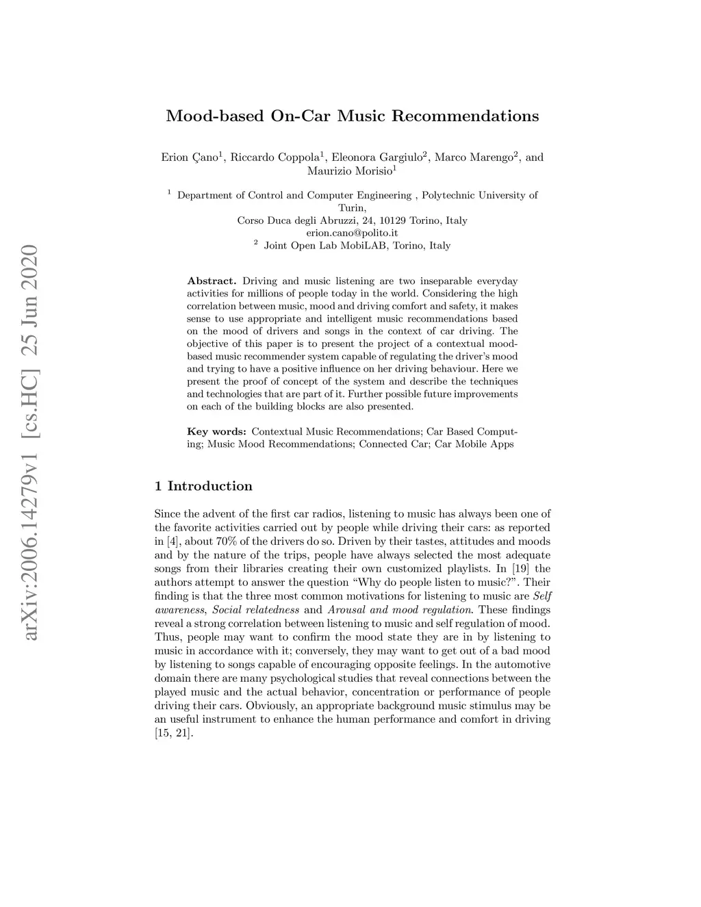 Mood-based On-Car Music Recommendations