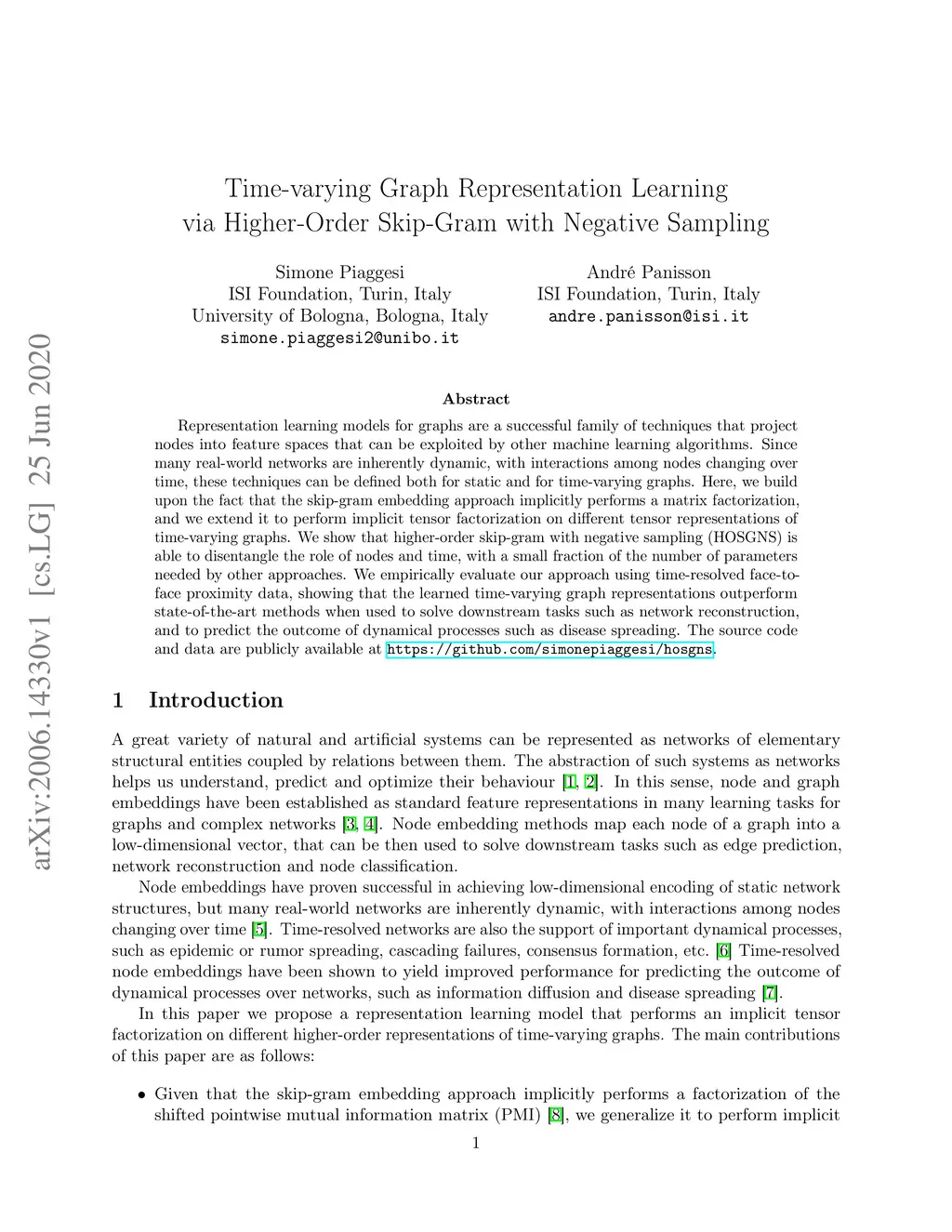 Time-varying Graph Representation Learning via Higher-Order Skip-Gram