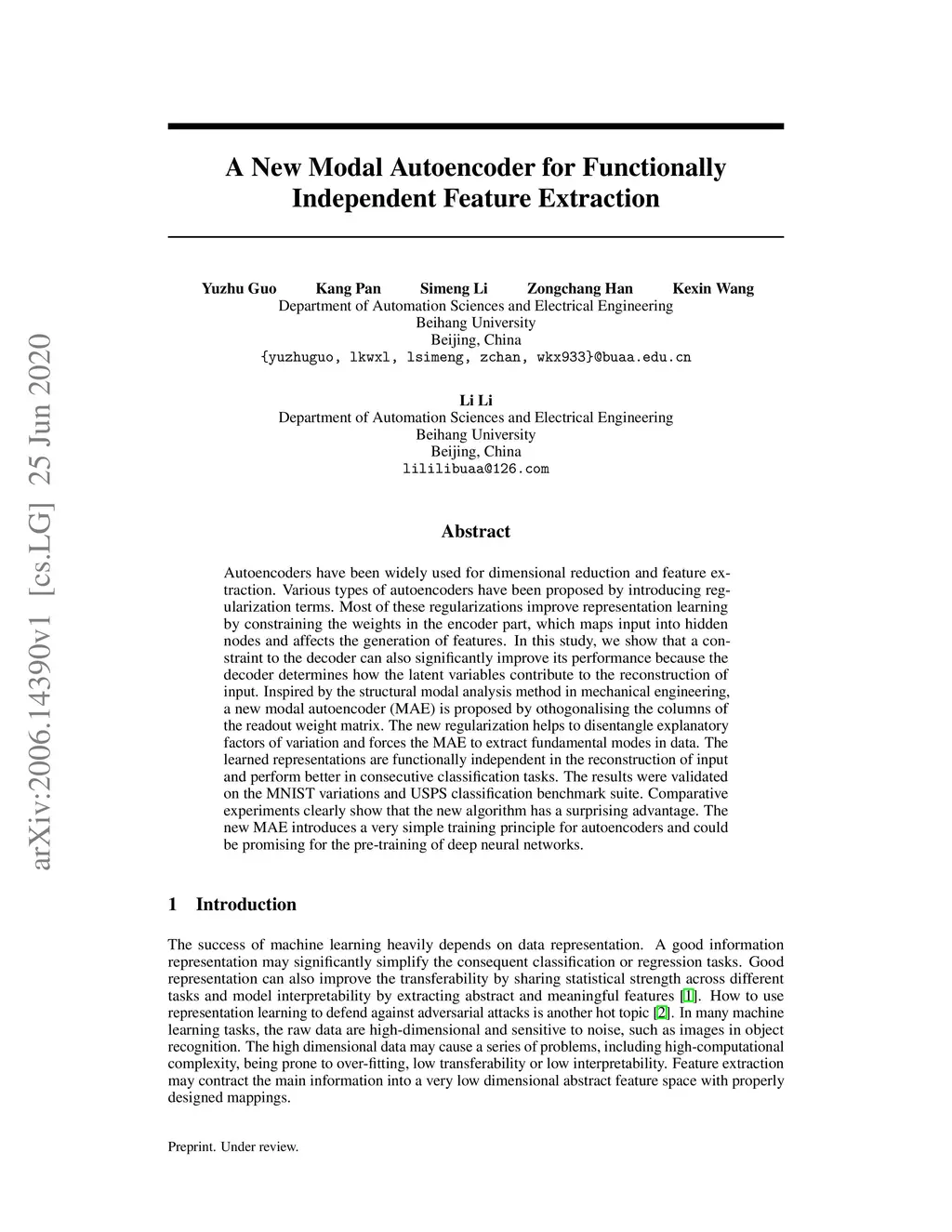 A New Modal Autoencoder for Functionally Independent Feature Extraction