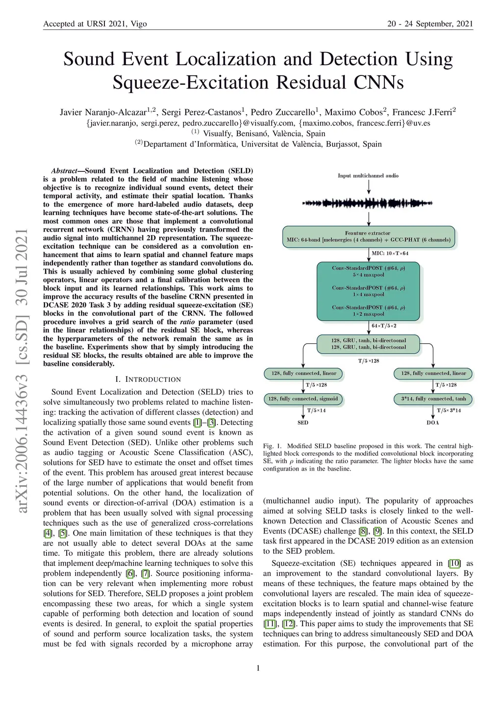 Sound Event Localization and Detection (SELD) is a problem related to the field of machine listening whose objective is to recognize individual sound events, detect their temporal activity, and estimate their spatial location. Thanks to the emergence of more hard-labeled audio datasets, deep learning techniques have become state-of-the-art solutions. The most common ones are those that implement a convolutional recurrent network (CRNN) having previously transformed the audio signal into multichannel 2D representation. The squeeze-excitation technique can be considered as a convolution enhancement that aims to learn spatial and channel feature maps independently rather than together as standard convolutions do. This is usually achieved by combining some global clustering operators, linear operators and a final calibration between the block input and its learned relationships. This work aims to improve the accuracy results of the baseline CRNN presented in DCASE 2020 Task 3 by adding residual squeeze-excitation (SE) blocks in the convolutional part of the CRNN. The followed procedure involves a grid search of the ratio parameter (used in the linear relationships) of the residual SE block, whereas the hyperparameters of the network remain the same as in the baseline. Experiments show that by simply introducing the residual SE blocks, the results obtained are able to improve the baseline considerably.