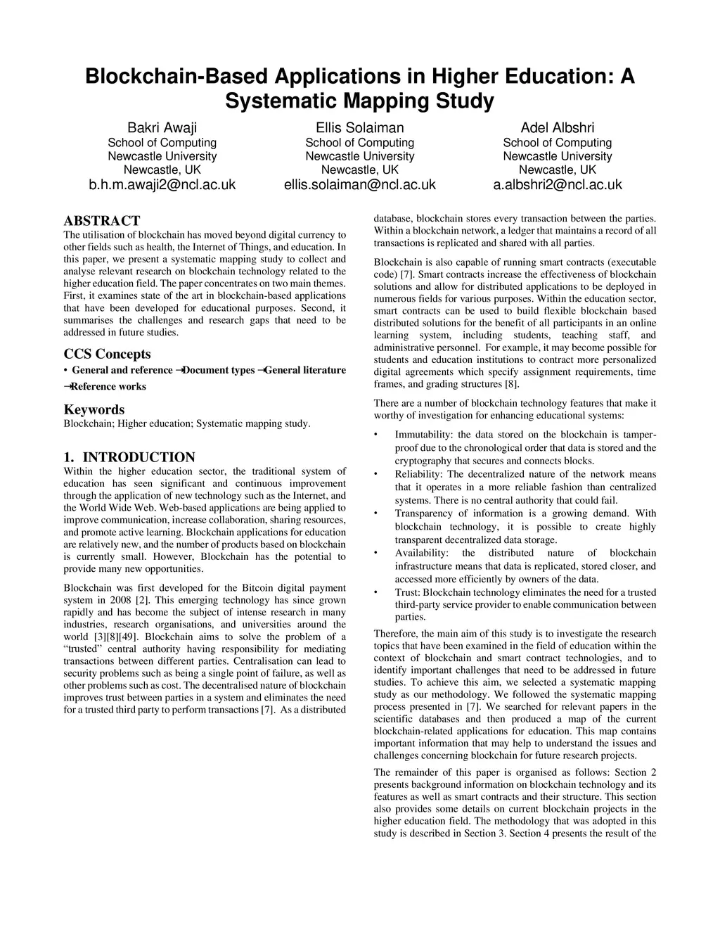 Blockchain-Based Applications in Higher Education: A Systematic Mapping