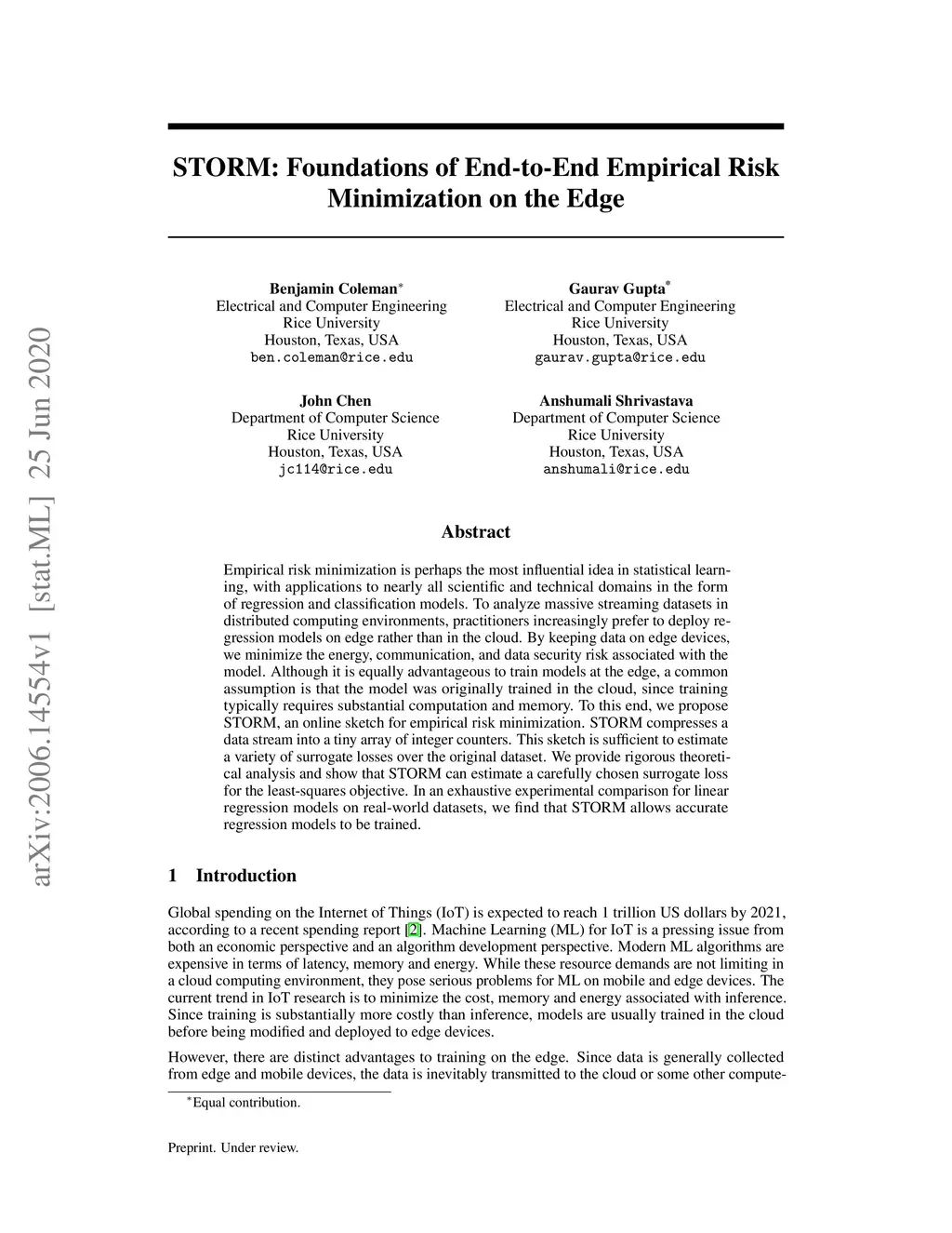 STORM: Foundations of End-to-End Empirical Risk Minimization on the Edge