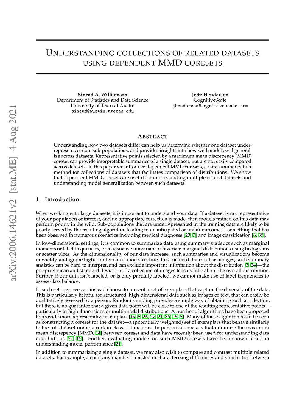 Understanding collections of related datasets using dependent MMD