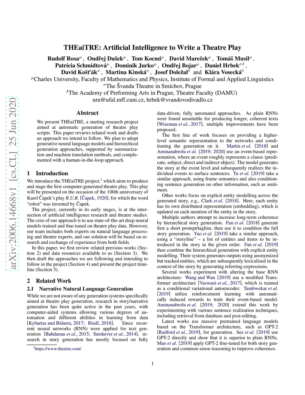 THEaiTRE: Artificial Intelligence to Write a Theatre Play