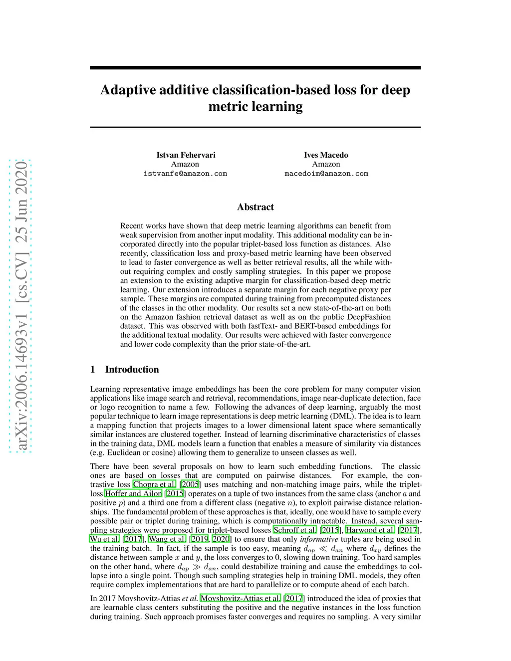 Adaptive additive classification-based loss for deep metric learning
