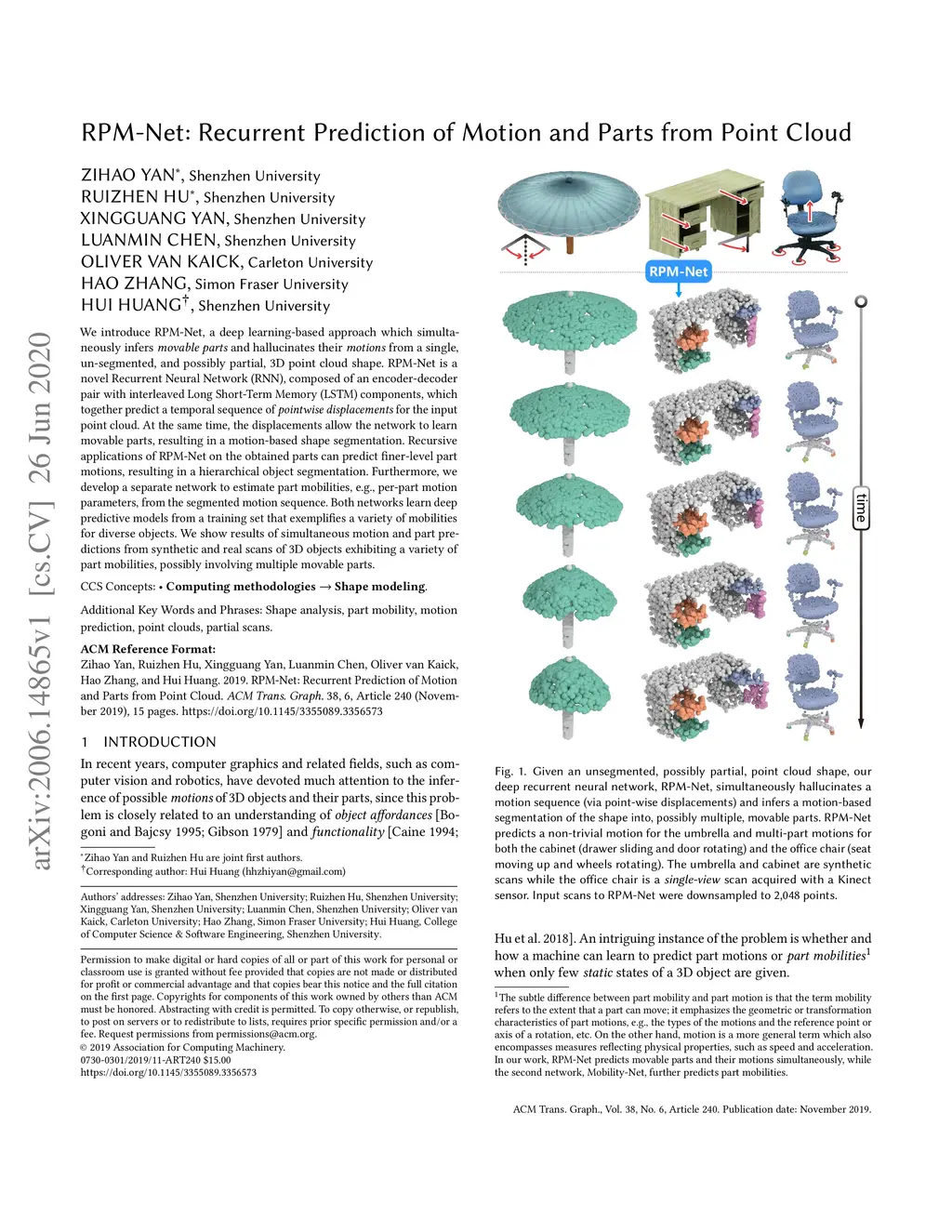 RPM-Net: Recurrent Prediction of Motion and Parts from Point Cloud