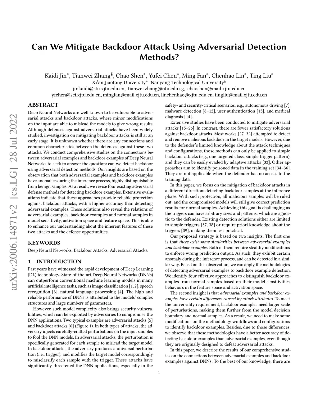 Can We Mitigate Backdoor Attack Using Adversarial Detection Methods?