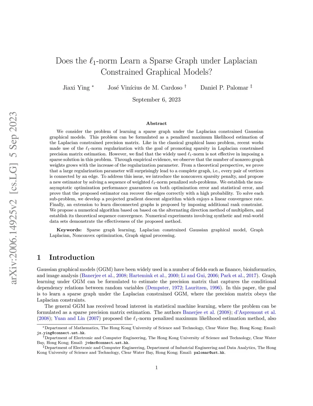 Does the -norm Learn a Sparse Graph under Laplacian Constrained