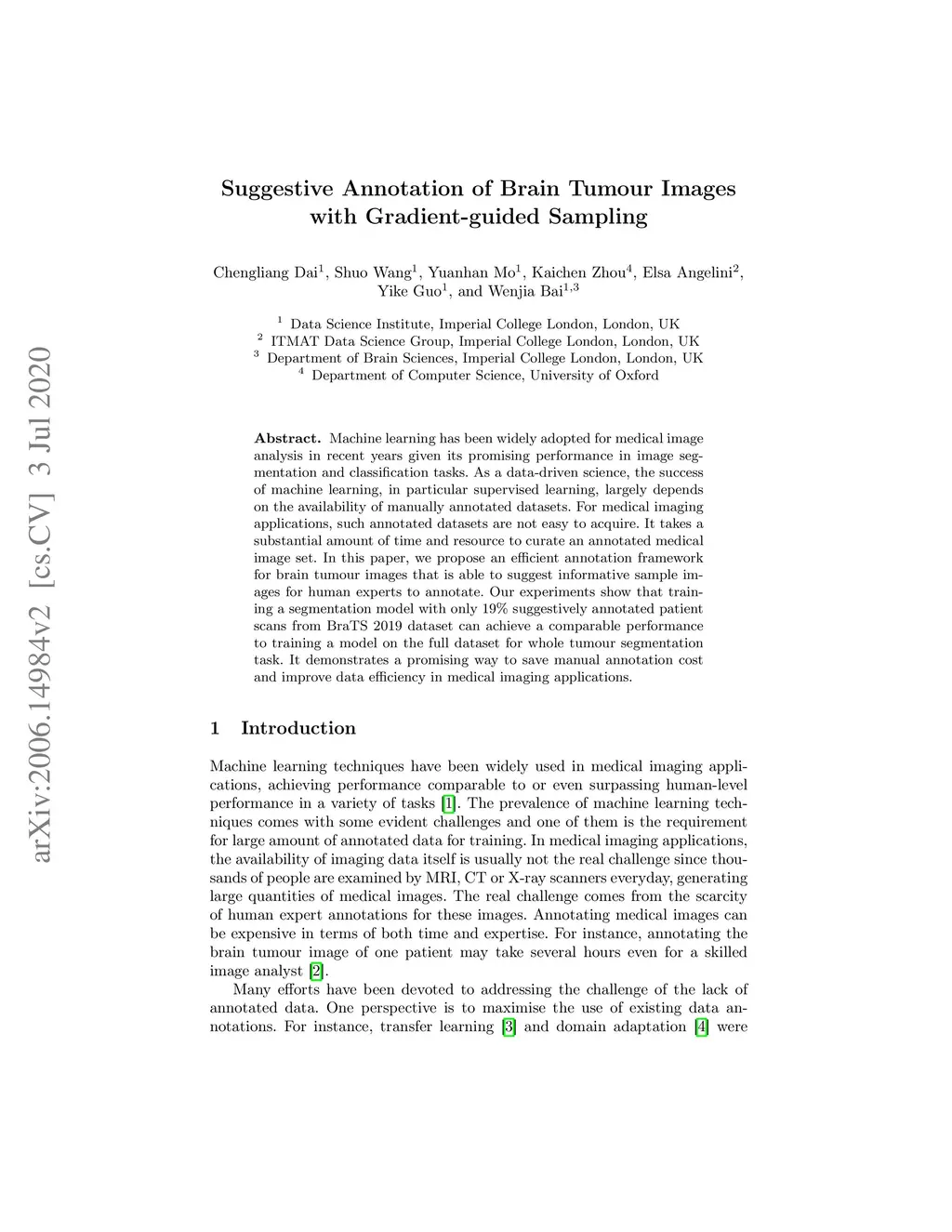 Suggestive Annotation of Brain Tumour Images with Gradient-guided