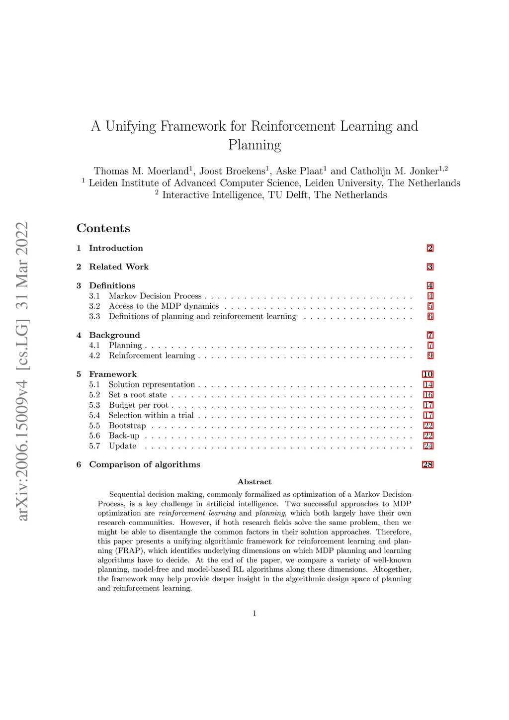 A Unifying Framework for Reinforcement Learning and Planning
