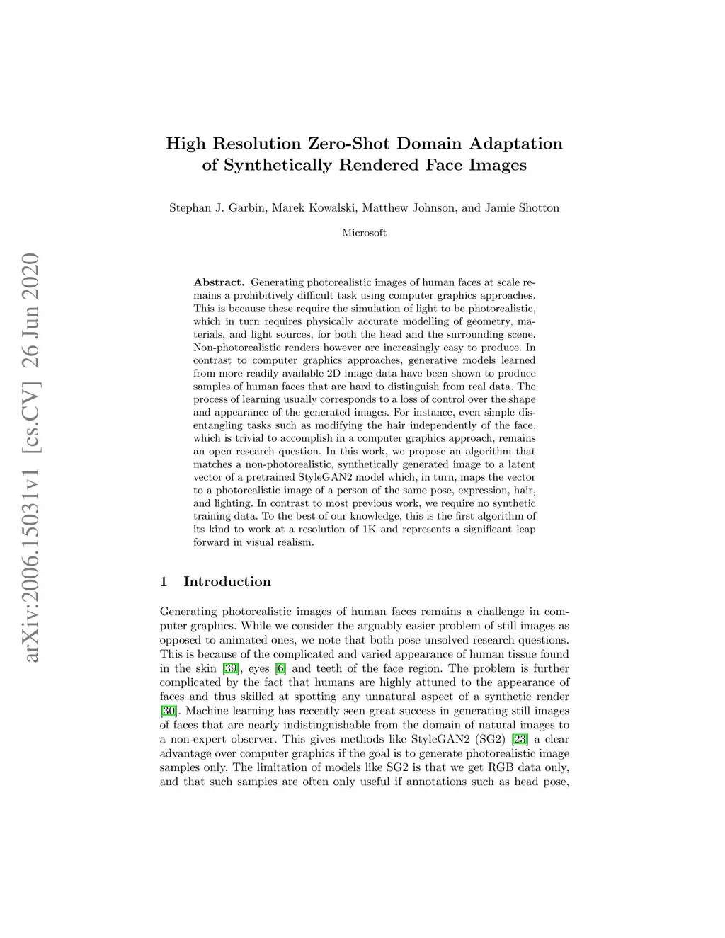 Generating photorealistic images of human faces at scale remains a prohibitively difficult task using computer graphics approaches. This is because these require the simulation of light to be photorealistic, which in turn requires physically accurate modelling of geometry, materials, and light sources, for both the head and the surrounding scene. Non-photorealistic renders however are increasingly easy to produce. In contrast to computer graphics approaches, generative models learned from more readily available 2D image data have been shown to produce samples of human faces that are hard to distinguish from real data. The process of learning usually corresponds to a loss of control over the shape and appearance of the generated images. For instance, even simple disentangling tasks such as modifying the hair independently of the face, which is trivial to accomplish in a computer graphics approach, remains an open research question. In this work, we propose an algorithm that matches a non-photorealistic, synthetically generated image to a latent vector of a pretrained StyleGAN2 model which, in turn, maps the vector to a photorealistic image of a person of the same pose, expression, hair, and lighting. In contrast to most previous work, we require no synthetic training data. To the best of our knowledge, this is the first algorithm of its kind to work at a resolution of 1K and represents a significant leap forward in visual realism.