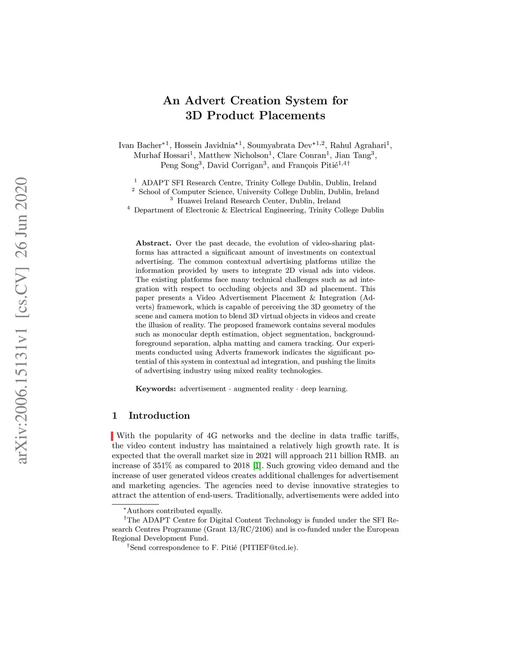 An Advert Creation System for 3D Product Placements