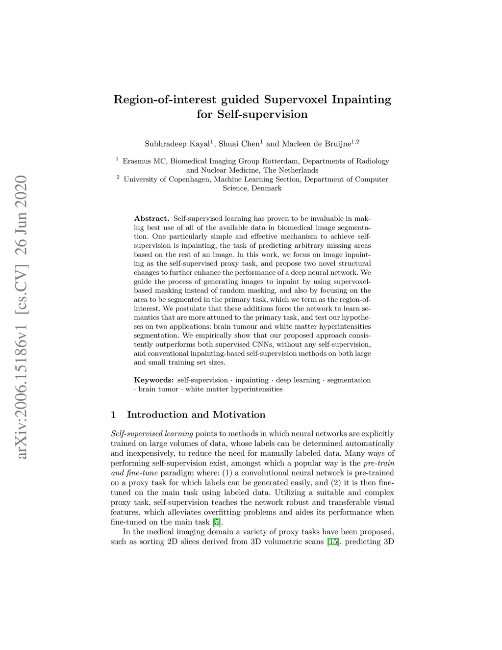 Region-of-interest guided Supervoxel Inpainting for Self-supervision