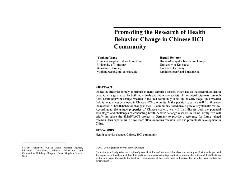 Promoting the Research of Health Behavior Change in Chinese HCI
