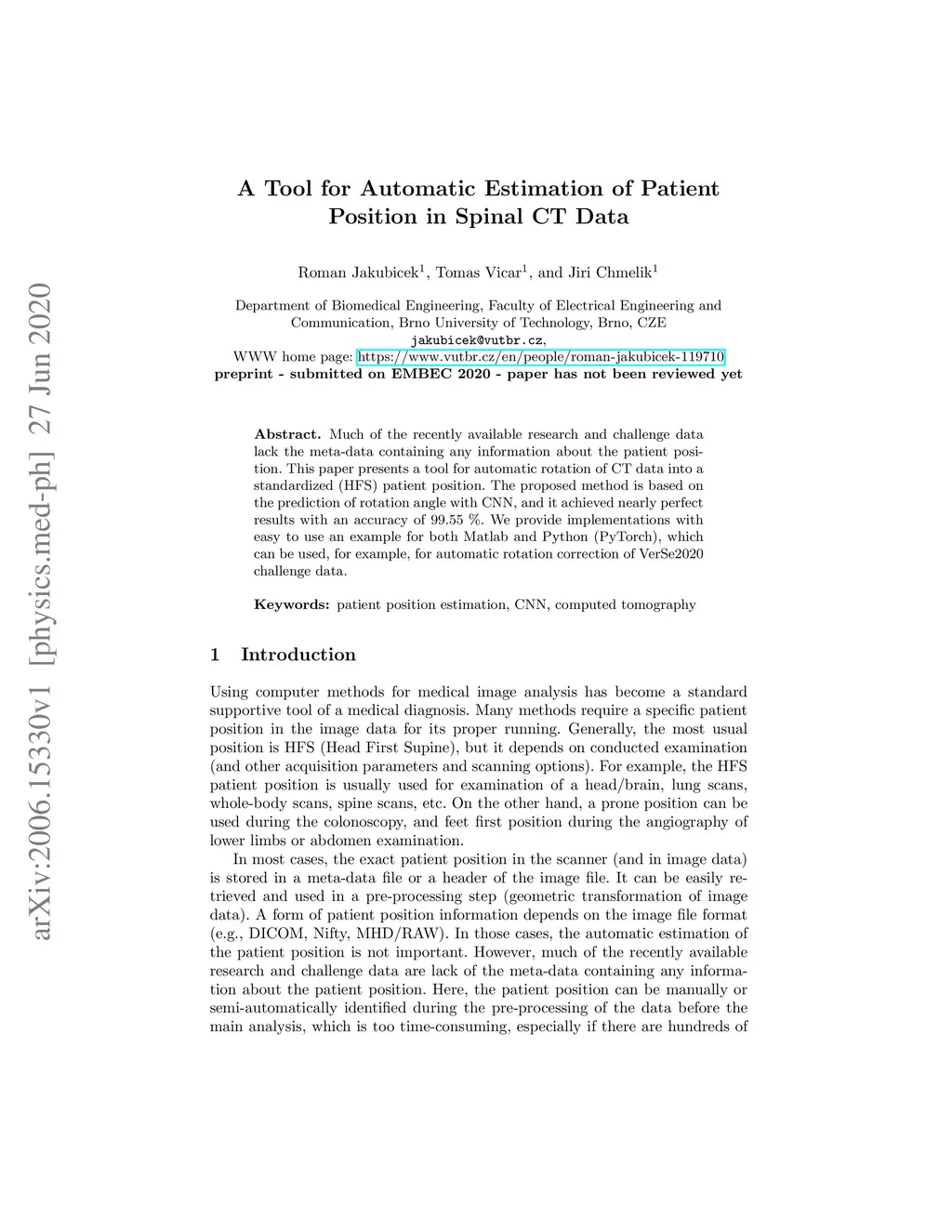 A Tool for Automatic Estimation of Patient Position in Spinal CT Data