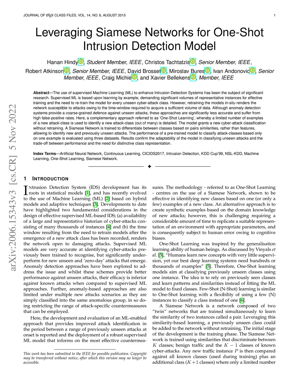 Leveraging Siamese Networks for One-Shot Intrusion Detection Model