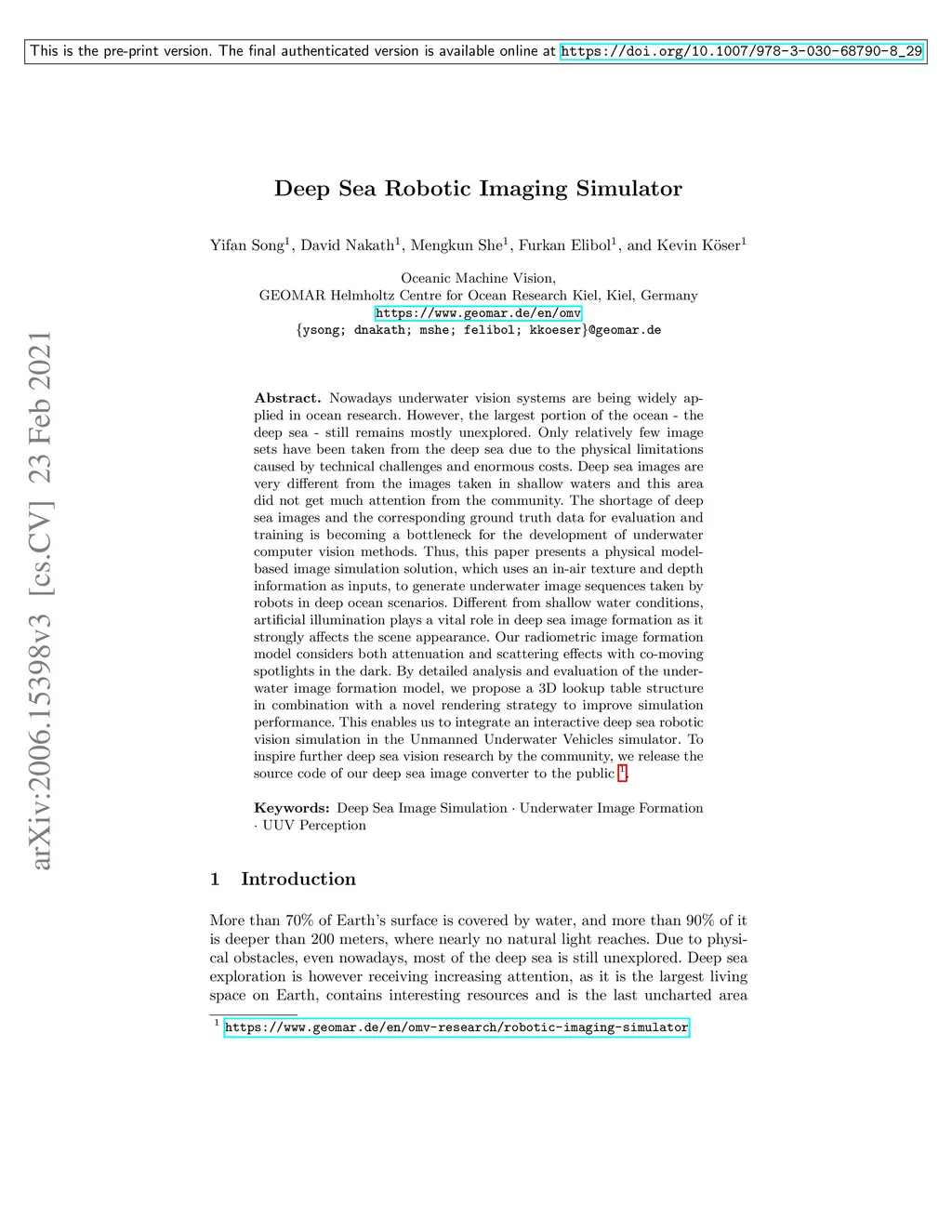 Deep Sea Robotic Imaging Simulator