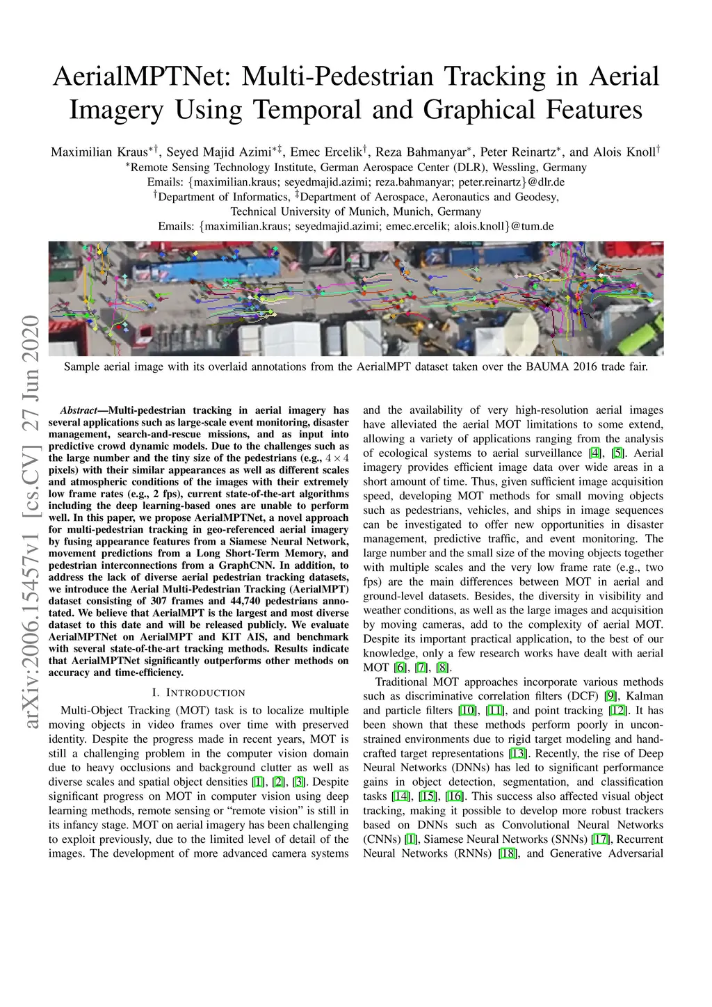 AerialMPTNet: Multi-Pedestrian Tracking in Aerial Imagery Using Temporal