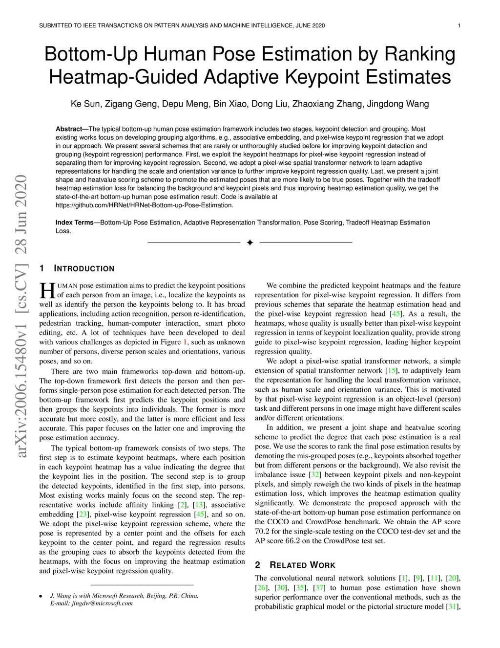 Bottom-Up Human Pose Estimation by Ranking Heatmap-Guided Adaptive