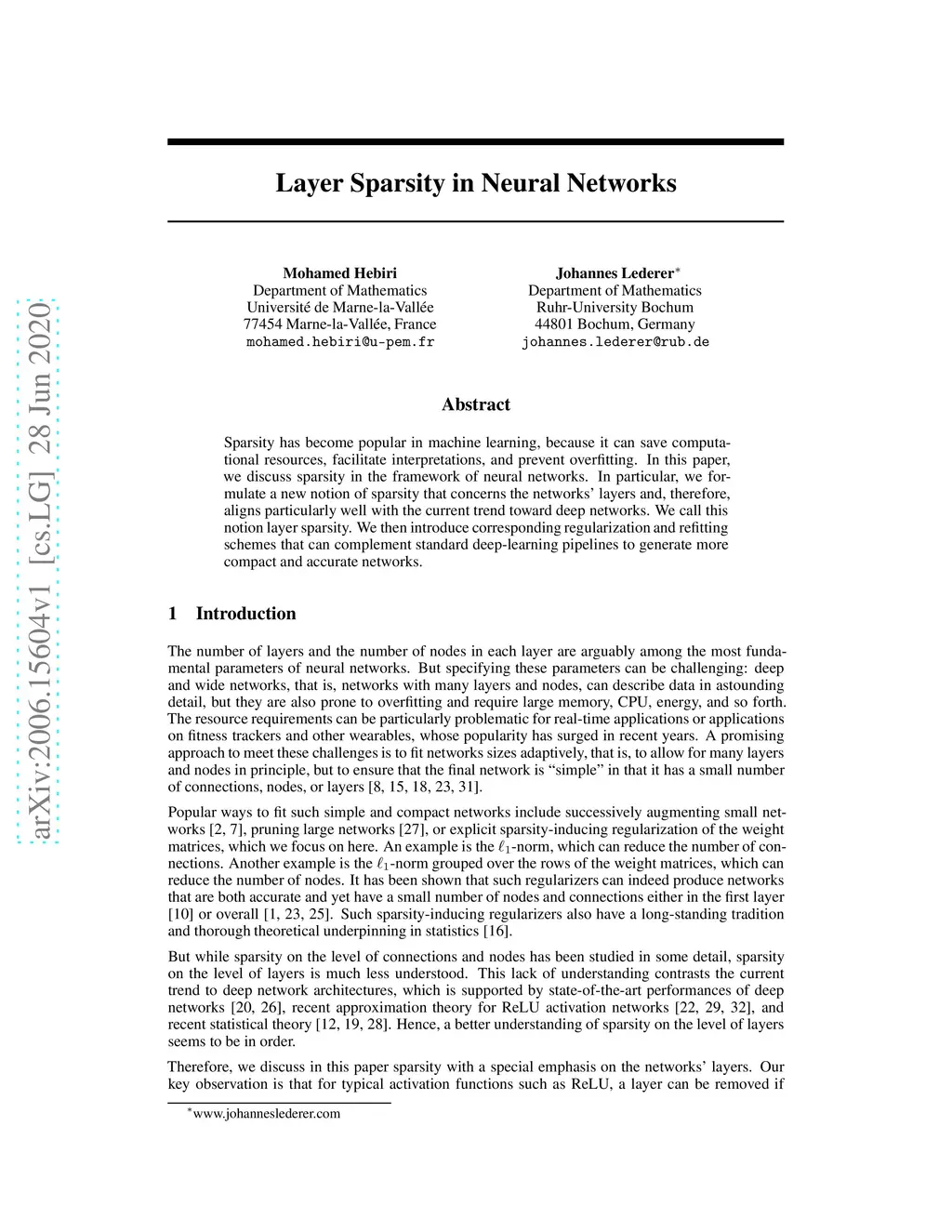 Layer Sparsity in Neural Networks