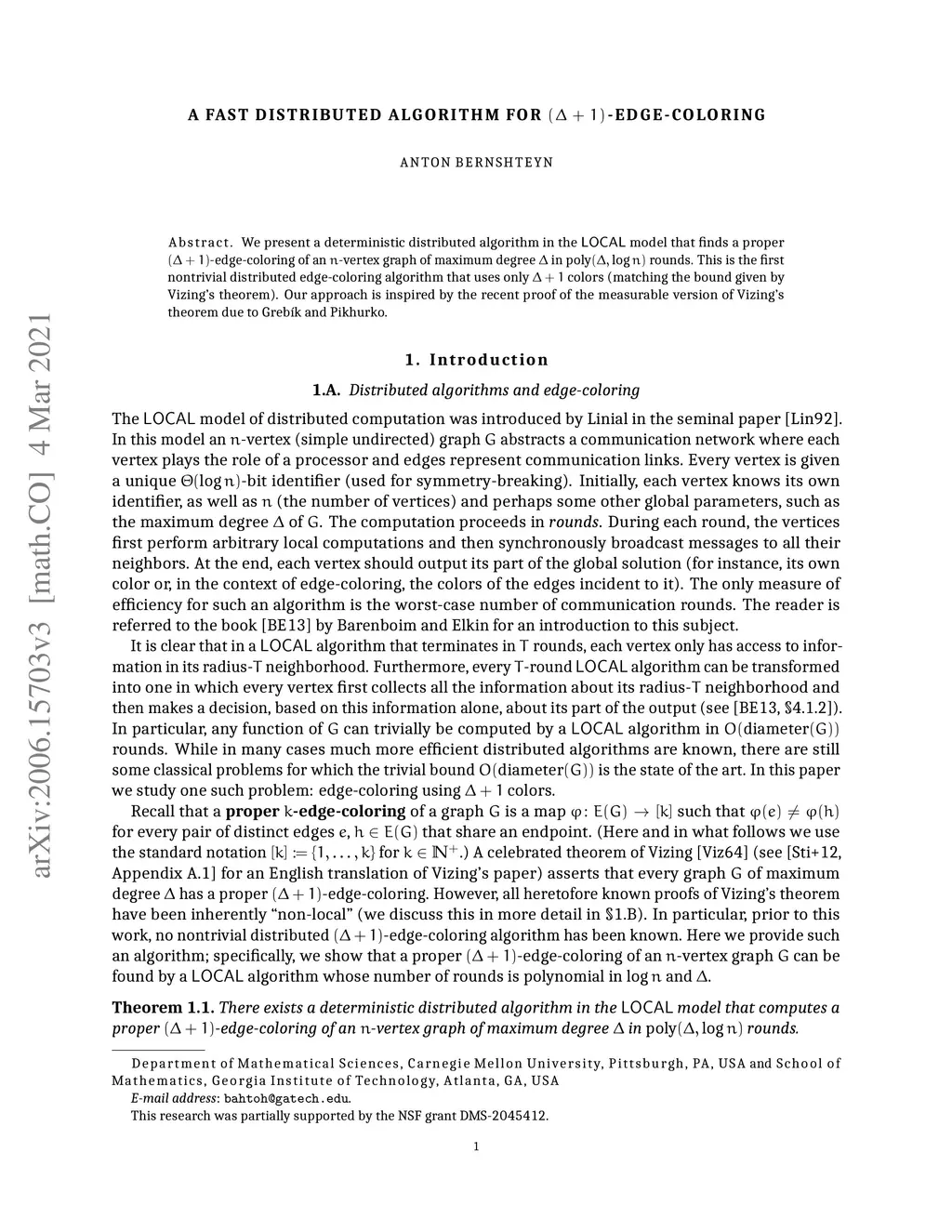 We present a deterministic distributed algorithm in the LOCAL model that finds a proper -edge-coloring of an -vertex graph of maximum degree in rounds. This is the first nontrivial distributed edge-coloring algorithm that uses only colors (matching the bound given by Vizing's theorem). Our approach is inspired by the recent proof of the measurable version of Vizing's theorem due to Greb\ík and Pikhurko.