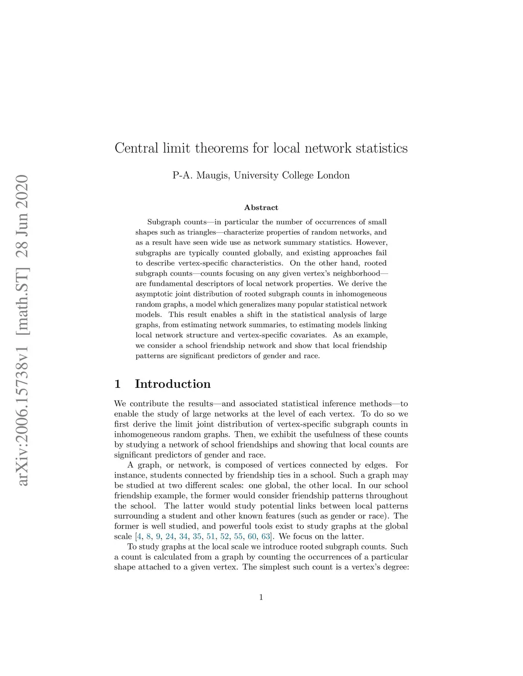 Subgraph counts - in particular the number of occurrences of small shapes such as triangles - characterize properties of random networks, and as a result have seen wide use as network summary statistics. However, subgraphs are typically counted globally, and existing approaches fail to describe vertex-specific characteristics. On the other hand, rooted subgraph counts - counts focusing on any given vertex's neighborhood - are fundamental descriptors of local network properties. We derive the asymptotic joint distribution of rooted subgraph counts in inhomogeneous random graphs, a model which generalizes many popular statistical network models. This result enables a shift in the statistical analysis of large graphs, from estimating network summaries, to estimating models linking local network structure and vertex-specific covariates. As an example, we consider a school friendship network and show that local friendship patterns are significant predictors of gender and race.