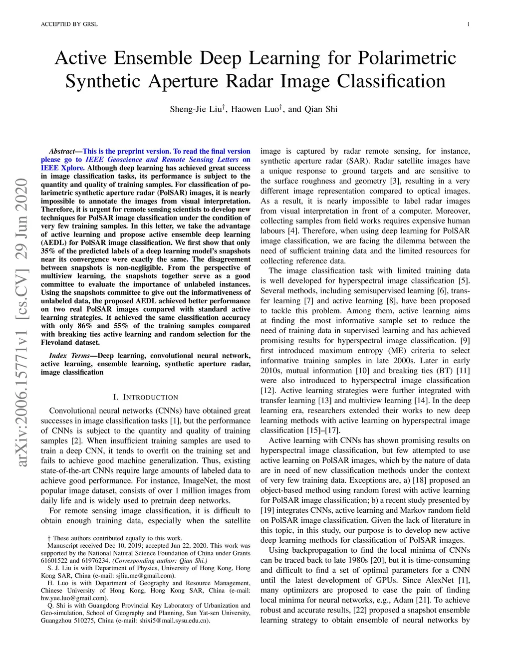 Active Ensemble Deep Learning for Polarimetric Synthetic Aperture Radar