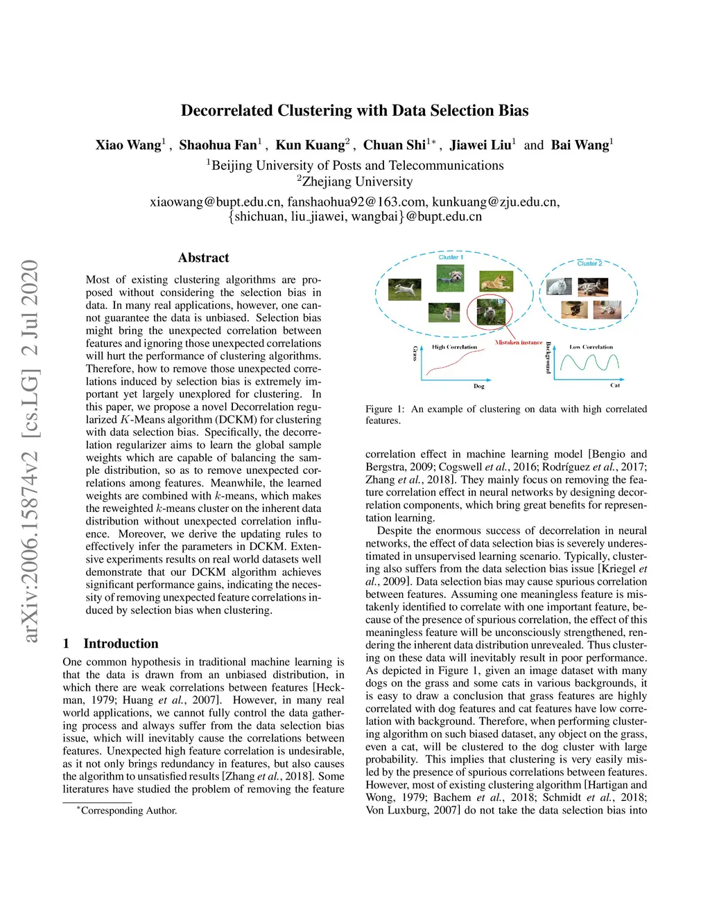 Decorrelated Clustering with Data Selection Bias