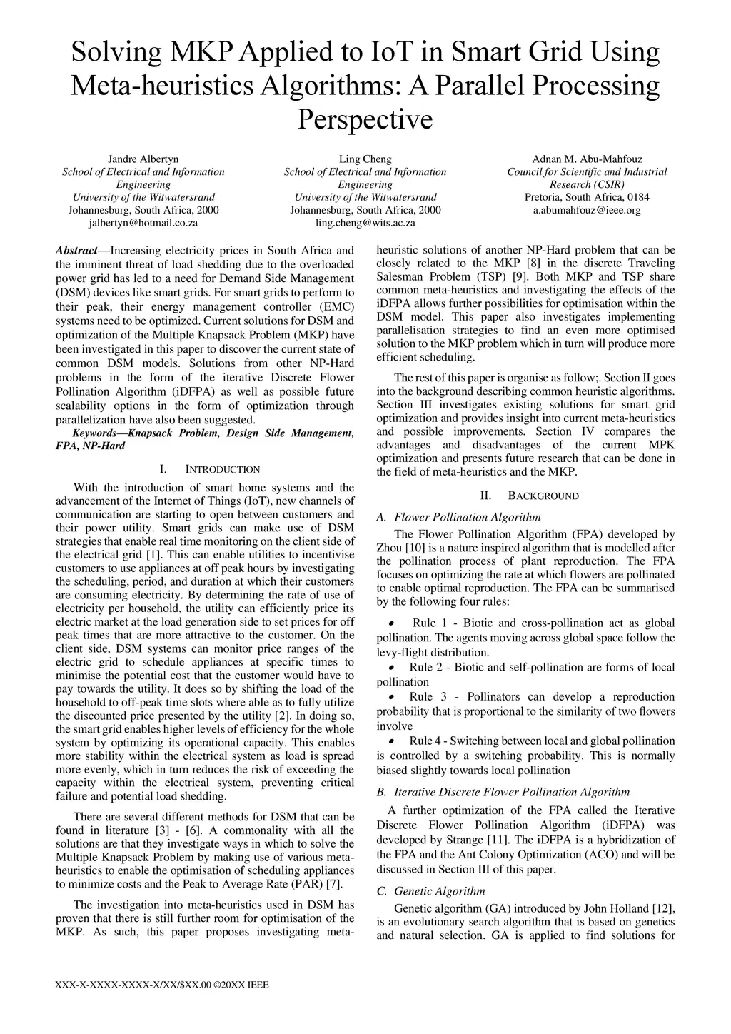 Solving MKP Applied to IoT in Smart Grid Using Meta-heuristics