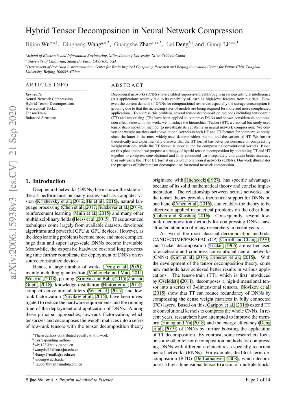 Hybrid Tensor Decomposition in Neural Network Compression