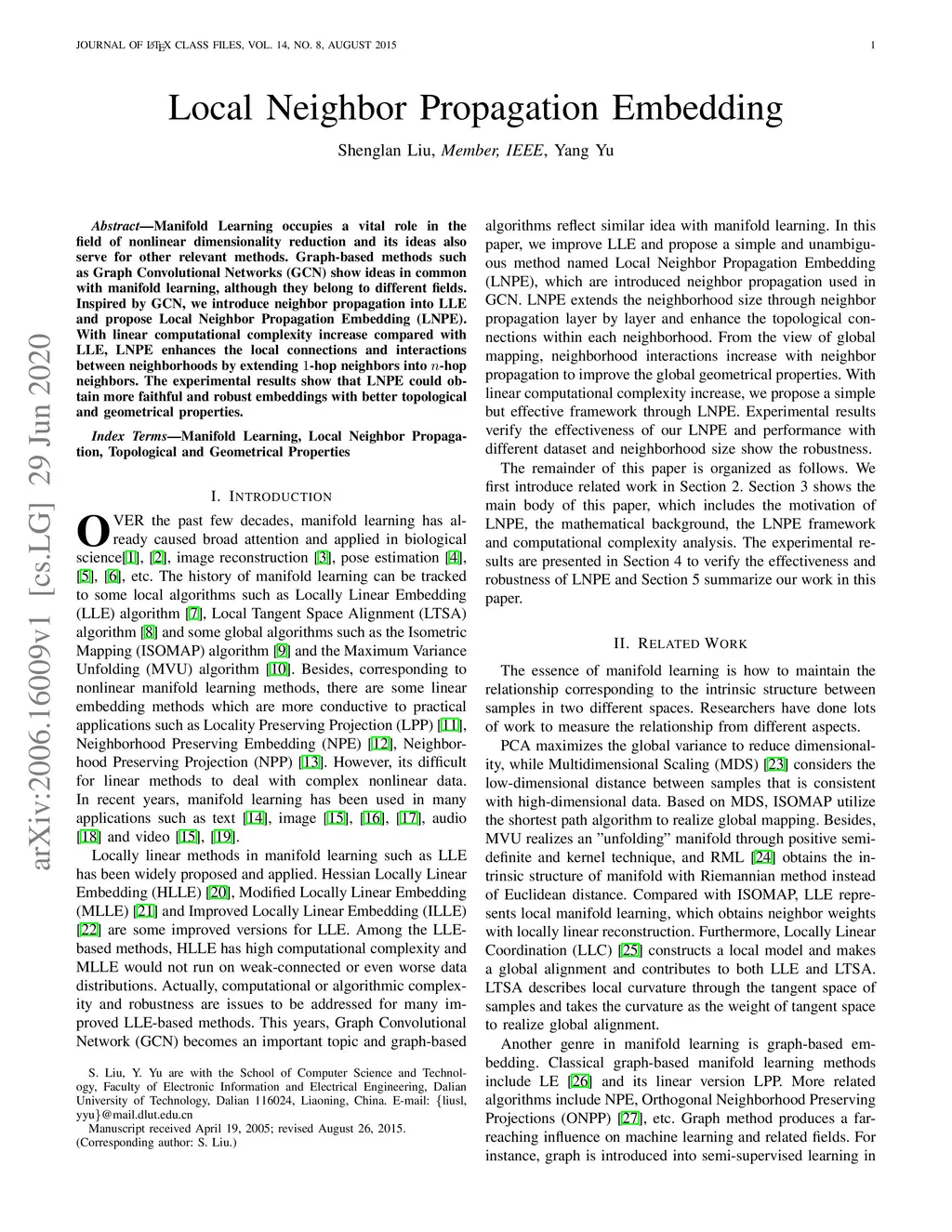 Local Neighbor Propagation Embedding