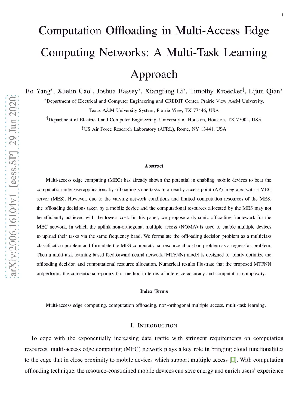 Computation Offloading in Multi-Access Edge Computing Networks: A