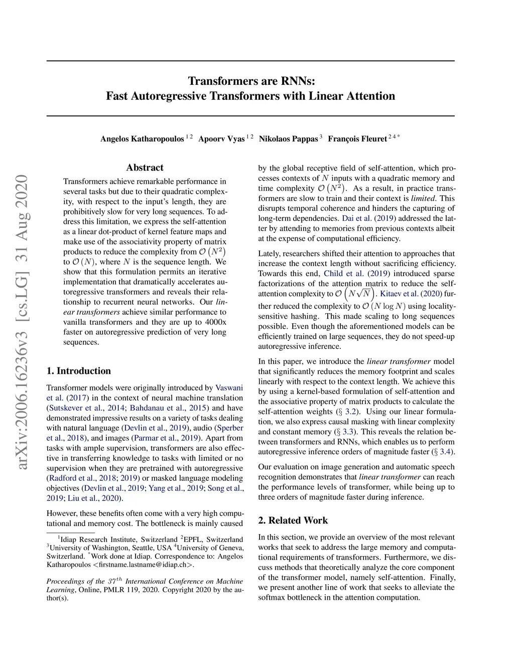 Transformers are RNNs: Fast Autoregressive Transformers with Linear