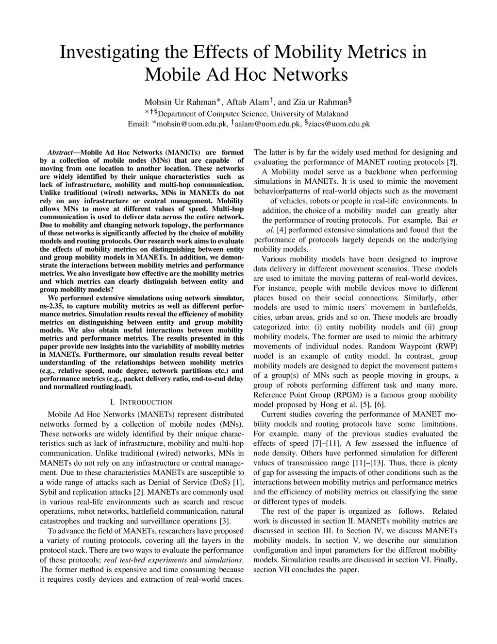 Investigating the Effects of Mobility Metrics in Mobile Ad Hoc Networks