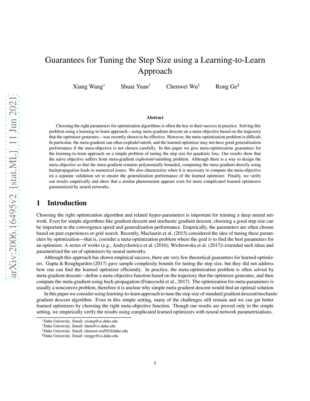 Guarantees for Tuning the Step Size using a Learning-to-Learn Approach