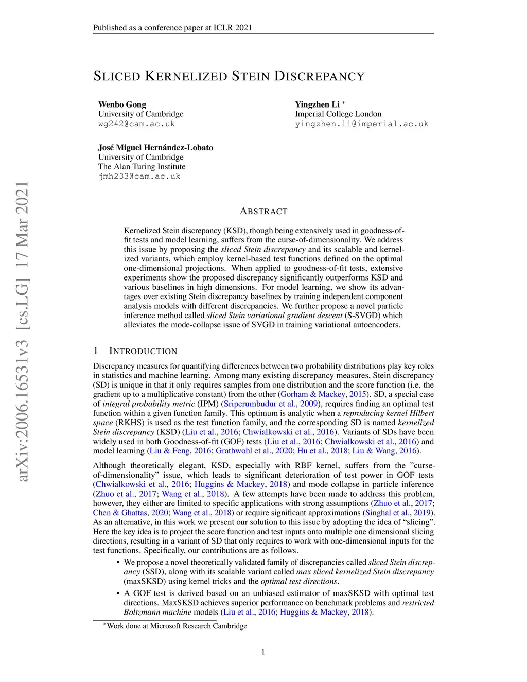 Kernelized Stein discrepancy (KSD), though being extensively used in goodness-of-fit tests and model learning, suffers from the curse-of-dimensionality. We address this issue by proposing the sliced Stein discrepancy and its scalable and kernelized variants, which employ kernel-based test functions defined on the optimal one-dimensional projections. When applied to goodness-of-fit tests, extensive experiments show the proposed discrepancy significantly outperforms KSD and various baselines in high dimensions. For model learning, we show its advantages over existing Stein discrepancy baselines by training independent component analysis models with different discrepancies. We further propose a novel particle inference method called sliced Stein variational gradient descent (S-SVGD) which alleviates the mode-collapse issue of SVGD in training variational autoencoders.