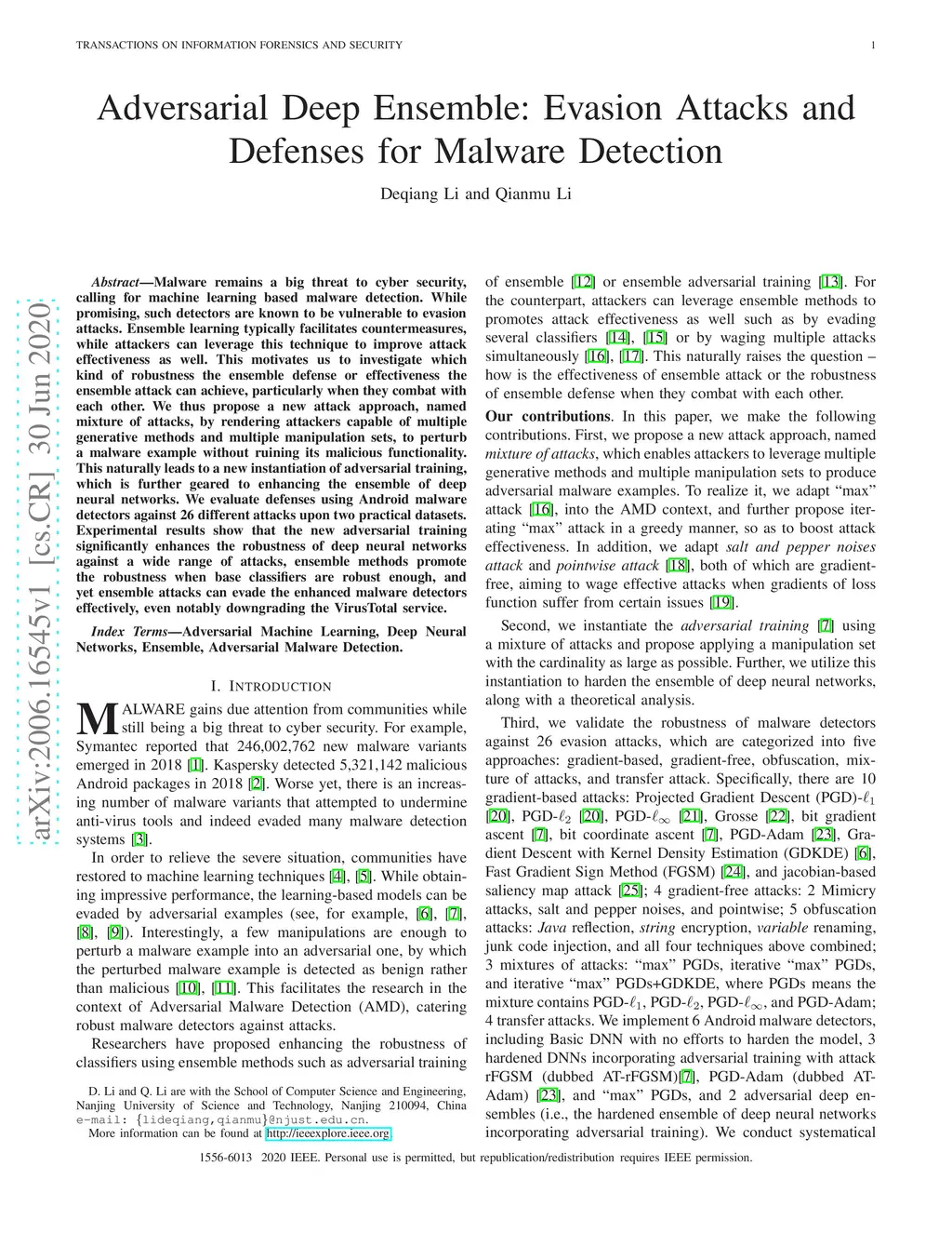 Adversarial Deep Ensemble: Evasion Attacks and Defenses for Malware