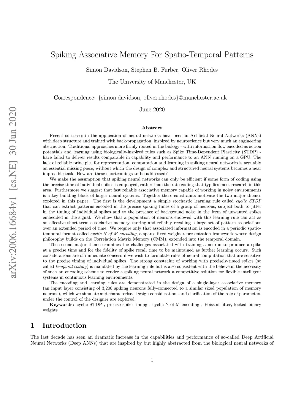 Spiking Associative Memory for Spatio-Temporal Patterns