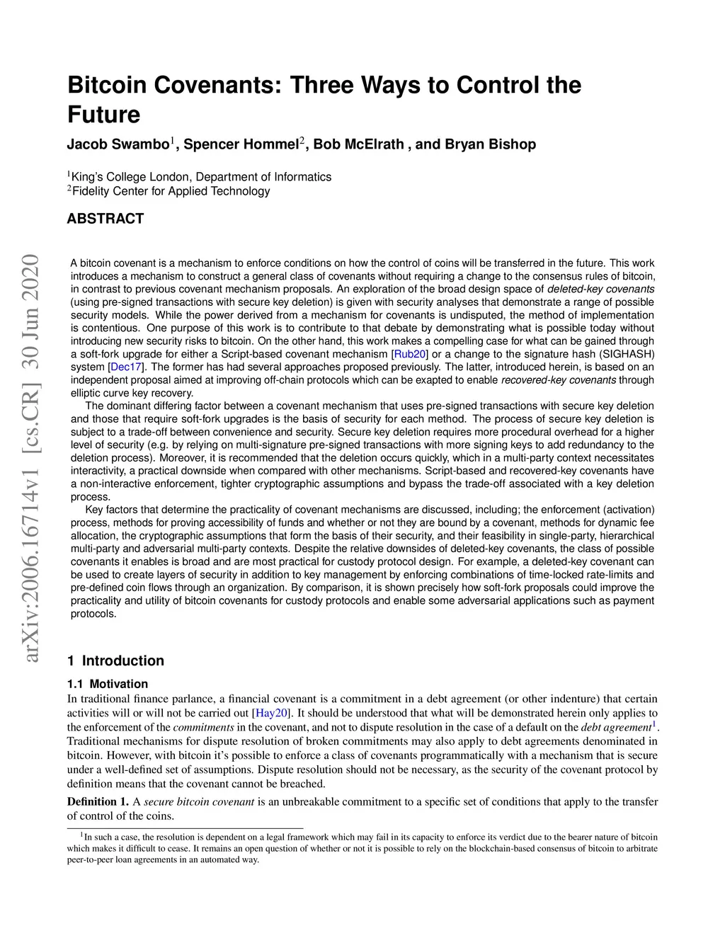 Bitcoin Covenants: Three Ways to Control the Future